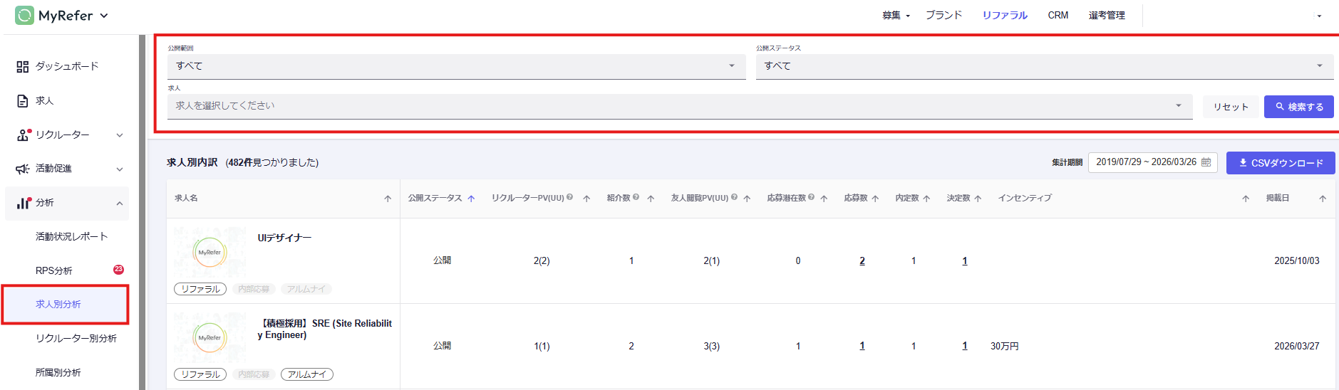 本記事では、作成した求人ごとのパフォーマンスを可視化する「求人別分析」機能について解説します。