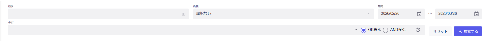 画面上部の検索機能を利用することで、以下の条件でデータを抽出できます。